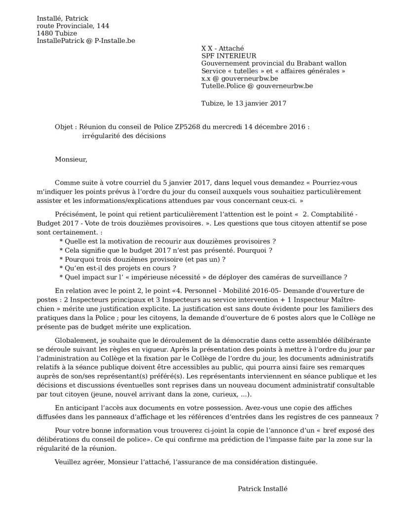 Objet : Réunion du conseil de Police ZP5268 du mercredi 14 décembre 2016 : irrégularité des décisions